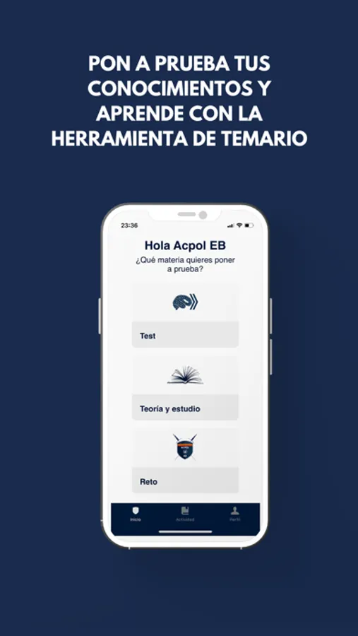 Lanzamos la app con un propósito claro, que sirva como un complemento. Nuestra formación básica y fundamental siempre va a estar en la plataforma, pero con esta app podréis poner a prueba vuestros conocimientos de un modo rápido, sencillo, intuitivo y en cualquier lugar. Es un proyecto de Acpol EB pero que actúa y sirve de modo independiente y complementario. Nunca sustituyendo al material que proporcionamos en la academia online.