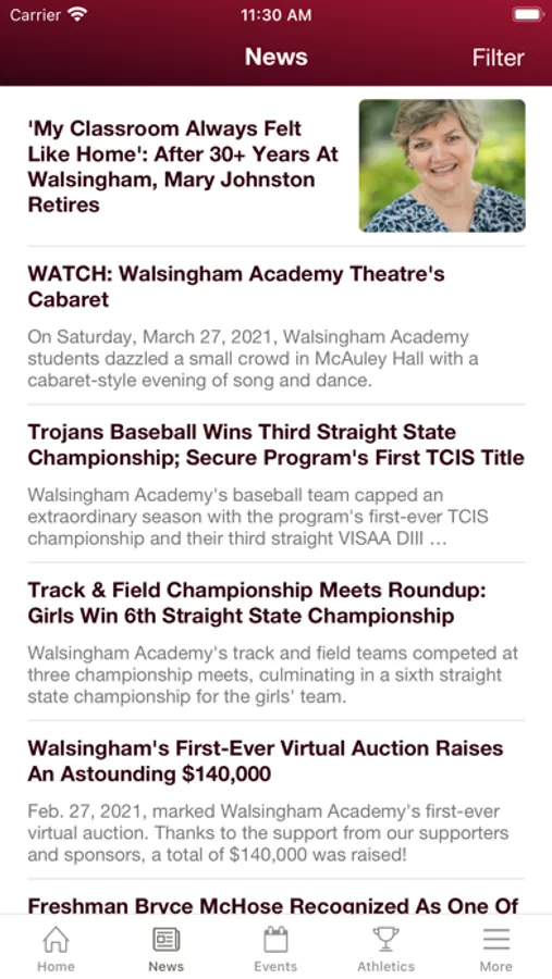 The Walsingham Academy app provides parents, students, and faculty members with all the information they need in one place, conveniently accessed and formatted specifically for their mobile devices.