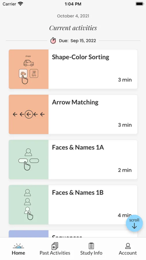If you choose to join a Mobile Toolbox study, you will use the free app to complete activities on your phone on a pre-set schedule. The activities may resemble puzzles, or they may test your memory. The data collected from the activities help researchers learn more about cognition.