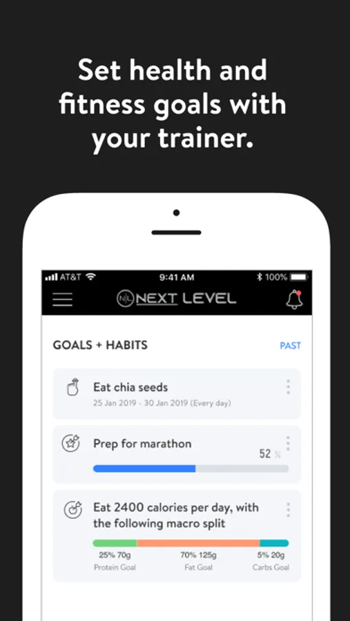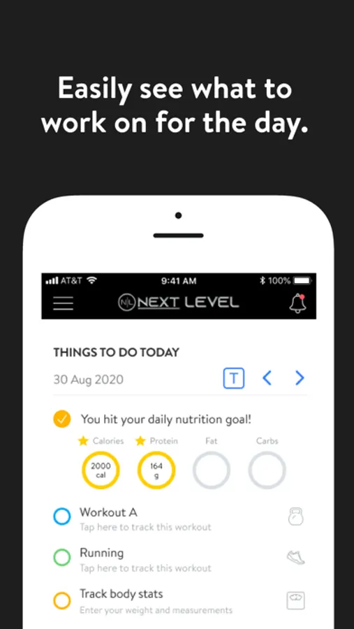 With Next Level Programming App, you can start tracking your workouts, measuring results, and achieving your fitness goals, all with the help from your Next Level team.
