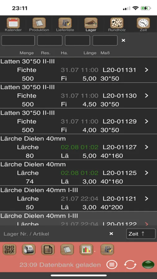 Mobile Erfassung von Schnittholz, Rundholz, Blockware, Lohnschnitt, Arbeitszeit, Lagerbestand und Lieferscheine für die TiList Warenwirtschaft.