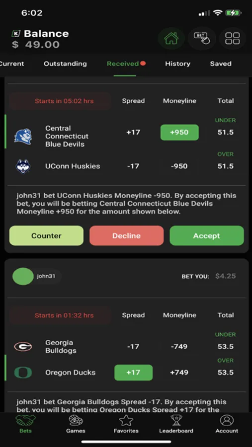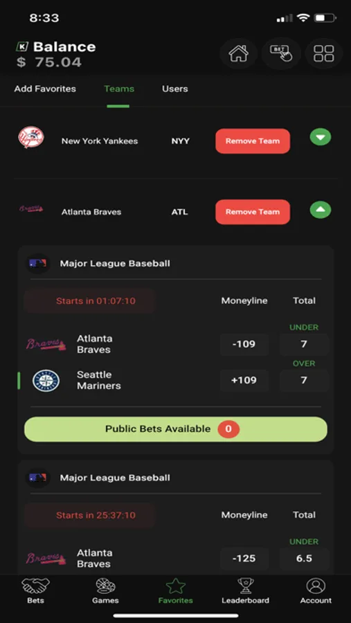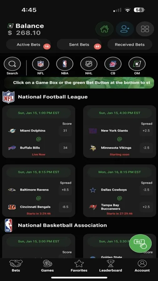 Kutt’s flagship product is our sports betting platform, a next-level game of skill where you can compete against your friends and other users by correctly predicting the outcome of sporting events. Competition is so much more fun when it’s social - on Kutt, everyone has a user profile, so you will always know exactly who you are competing against (and can always send that person a personalized message telling them just how much more you know about the game than they do). With detailed record-keeping, Kutt provides a fun way to track your performance against your competitors, and our app’s Leaderboard function showcases the users within the community who have the best prediction record.