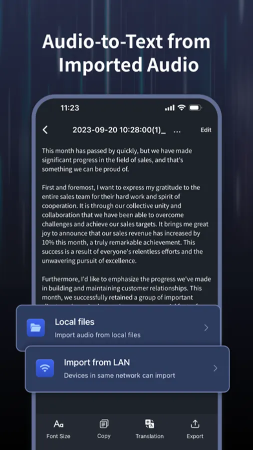 Effortlessly transcribe your voice memos and videos using VoiceTranscribe, leveraging advanced AI (Artificial Intelligence) and speech recognition technology. You only need to tap a button to provide easily readable and editable transcriptions.
