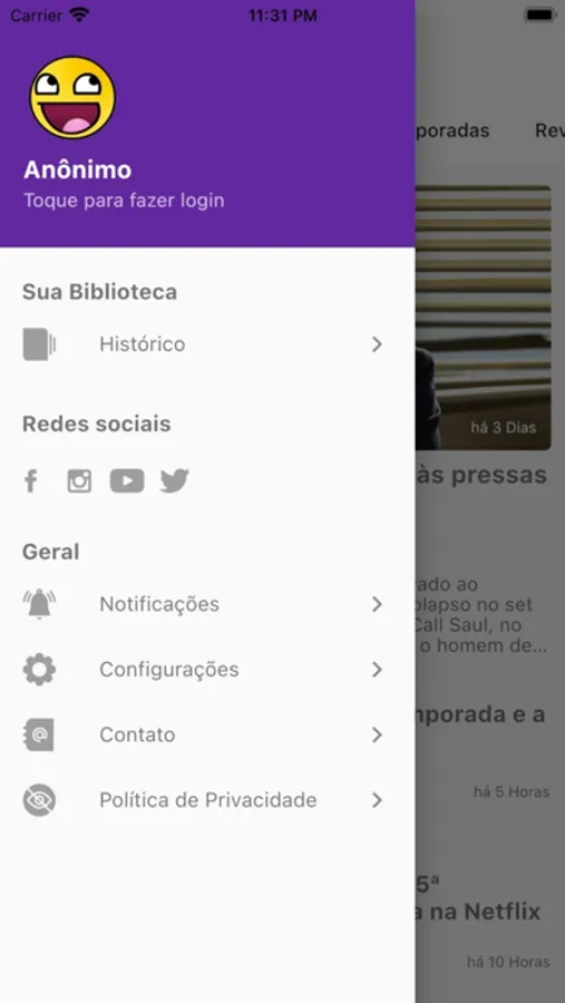 Faça login pelas redes sociais através do Facebook, Google e Apple e tenha sempre a certeza de que seus hábitos de leitura, itens compartilhados e salvos fiquem sempre seguros caso você tenha que trocar de dispositivo