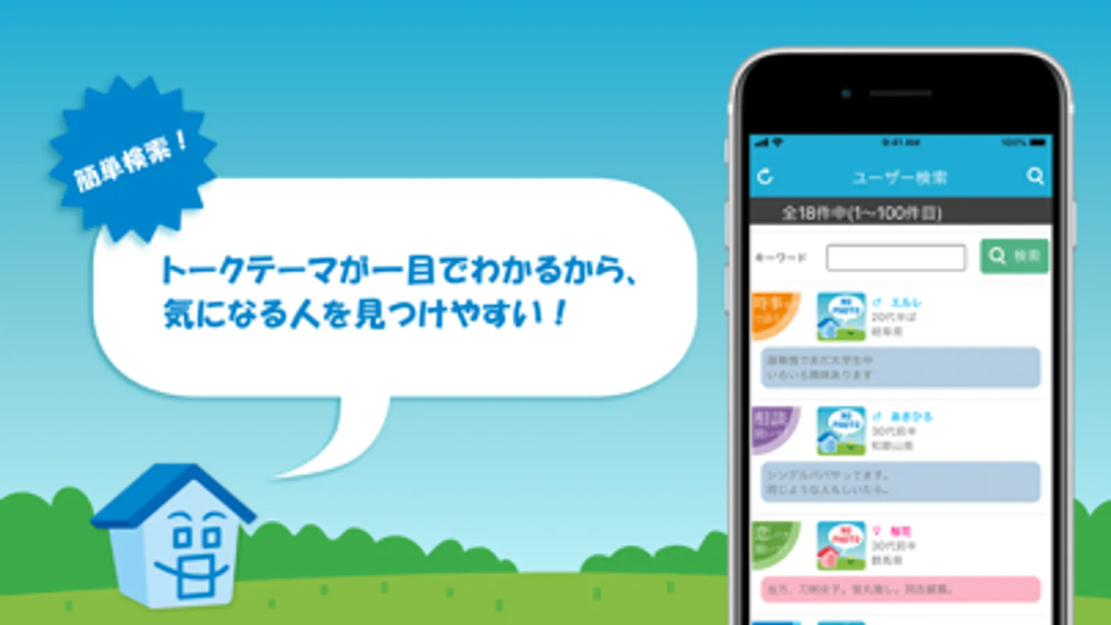 ◎検索画面では、みんなの話したいトークテーマが一目でわかるので、その時の気分でトーク相手を探しやすい!