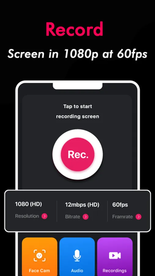 Screen Recorder HD in high-definition without limits. Start recording with one tap.