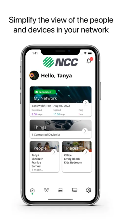 With myNCC Connect, you drive the smart home experience. Use the parental controls feature to create individual profiles, block unwanted content, and customize your family's Wi-Fi experience. Manage your network with device priority, device management, creating guest networks, and viewing network usage.