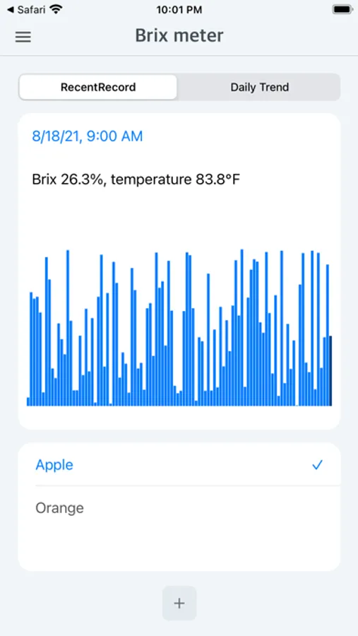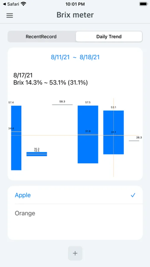valuerent fruits. Manage the minimum, maximum, and average values of daily brix value