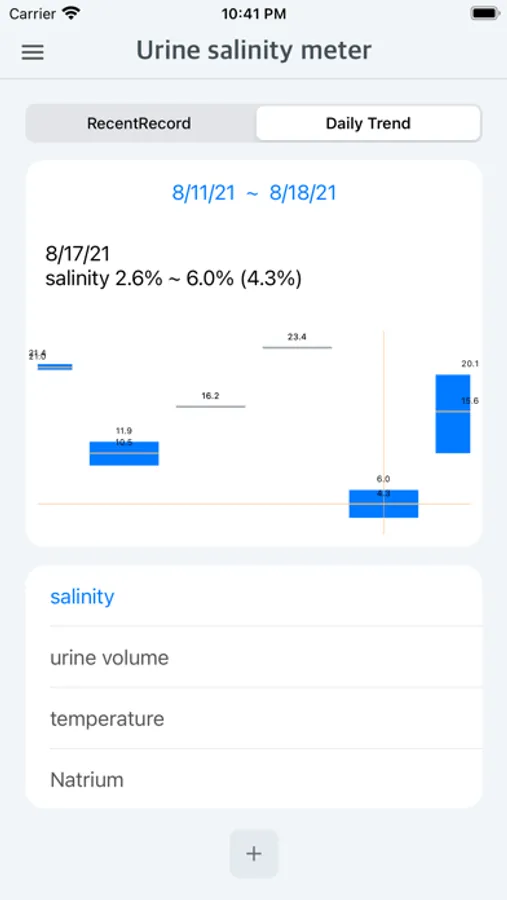 The average sodium concentration of urine, amount of urine, and sodium emissions