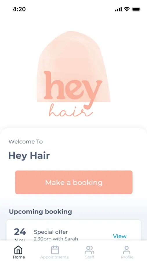 The Hey Hair app makes booking your appointments and managing your loyalty points even easier. You're just a few taps away from feeling good and looking great!