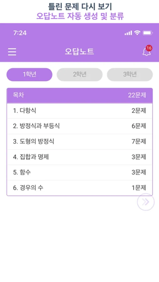학부모용 앱에서 부모님 계정과 내 계정을 연결하면 부모님이 내 진단결과 및 과제 일정 등을 확인할 수 있고, 오답노트 작성에 도움을 줄 수 있습니다.