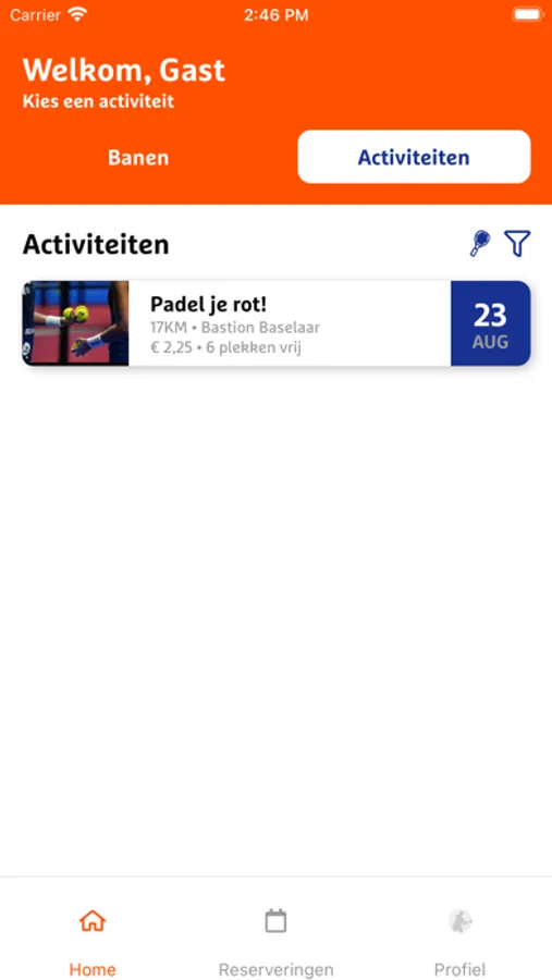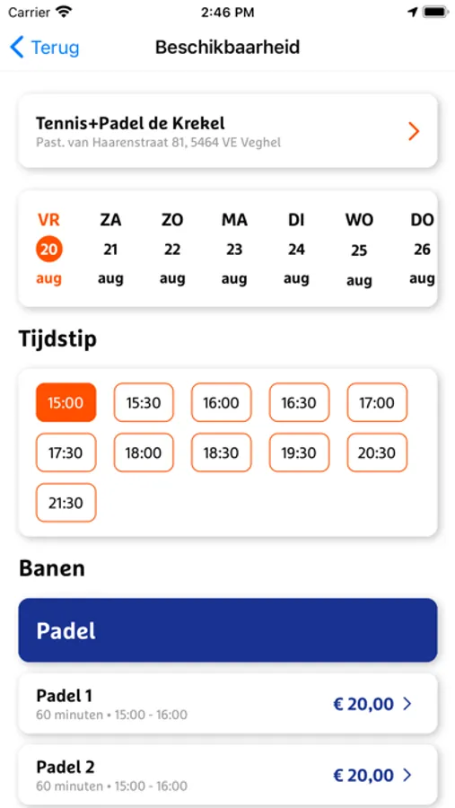 Heb je al eerder via Padelboeker.nl of Tennisboeker.nl een baan geboekt? Je hoeft dan niet opnieuw te registreren. Log met je e-mailadres en je wachtwoord en je kunt vanaf dat moment boeken vanuit de app.