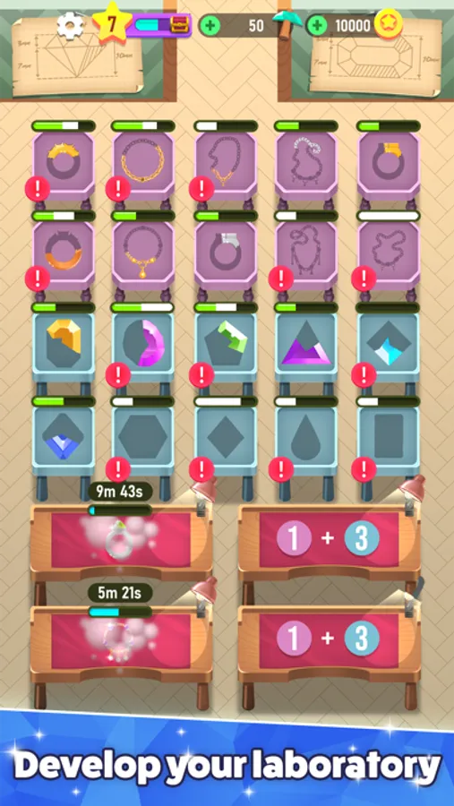 CRAFT IN LABORATORY! After you’re done with mining, you’ll enter the Laboratory, to craft jewelry. Assemble pieces of gems you’ve found in mine by matching them in a 2D Tangram Puzzle minigame. After matching all the pieces, combine everything to craft stunning jewelry, that will leave your clients bejeweled. You can craft fully custom jewelry to discover your creativity and passion for fashion. Create jewelry you and your clients will like to sell in the store. It’s a gems game!