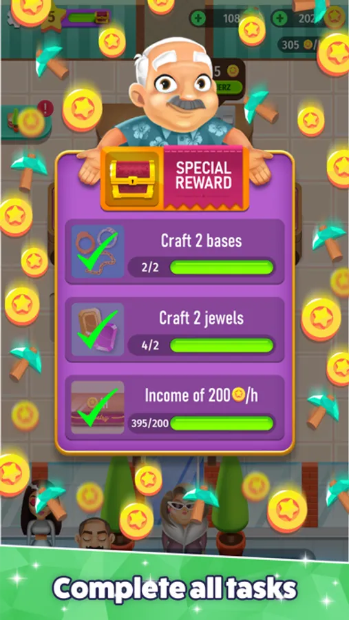 Sell created pieces at your shop to earn a fortune and expand to become real jewellery *boss*. Manage and customize you storefront to maximize profits and outperform the competition.
