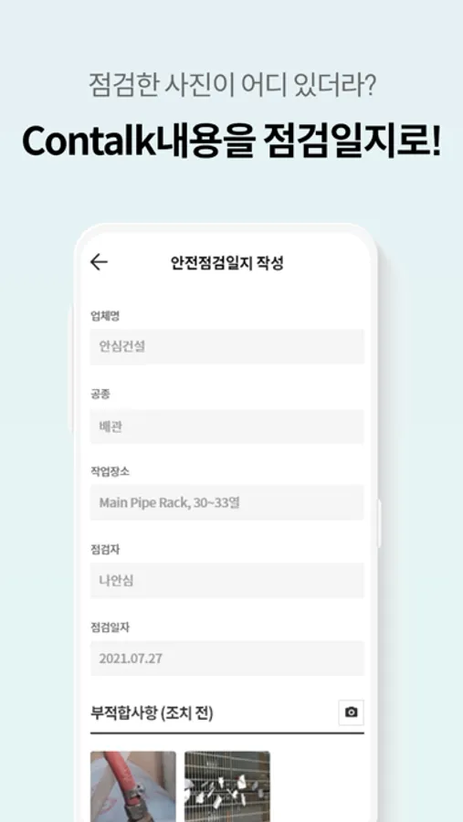 - 당일 점검내역을 기반으로, 안전점검일지 자동생성 및 제공