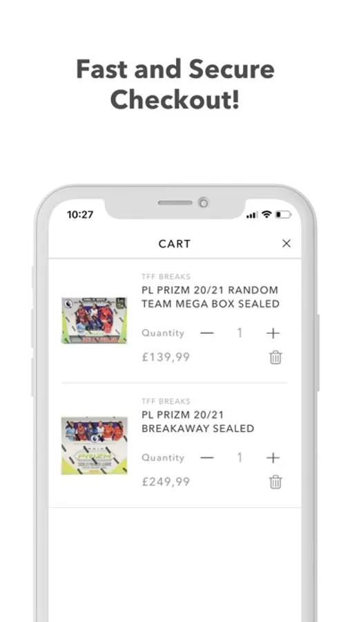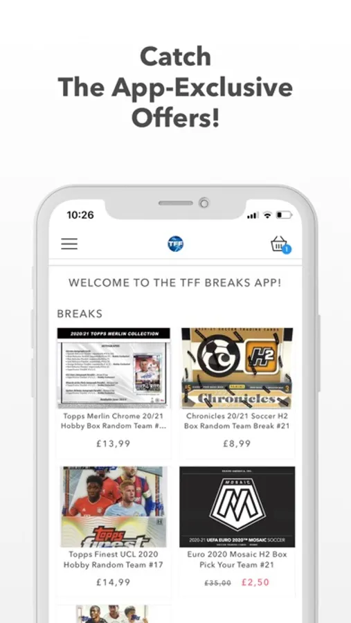 TFF Breaks is a community for sports card fans, mainly soccer/football! Our app allows for our users to get involved into our boxes easily whilst being able to scroll through all of our products seamlessly. Join our community of like minded individuals who love sports trading cards!