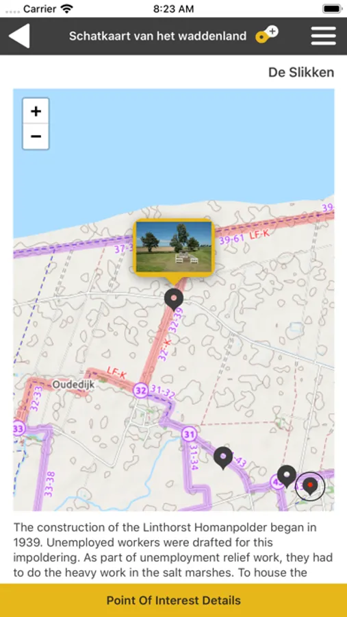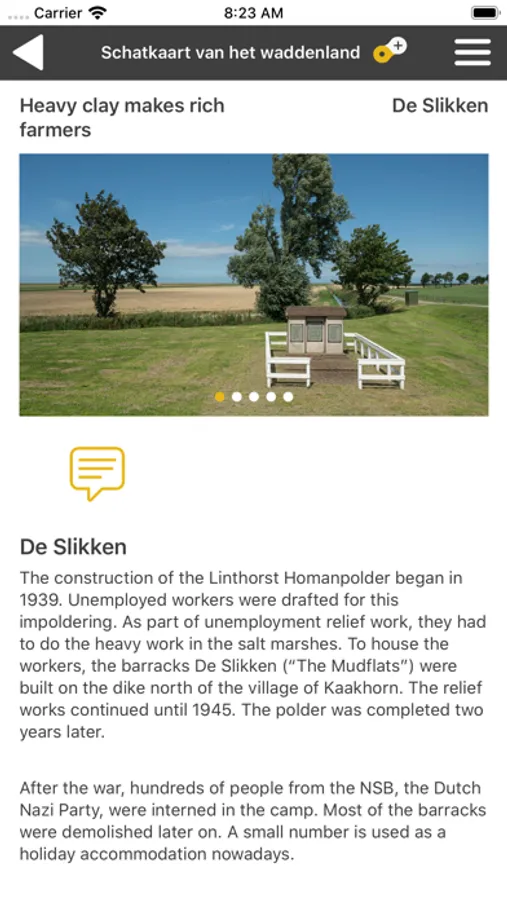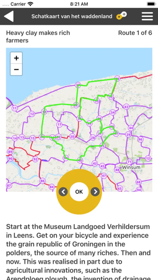 There are six themed routes. Choose a ready-made route, or cycle on your own. Those who do not choose a route are automatically alerted when there is an attraction in the vicinity.