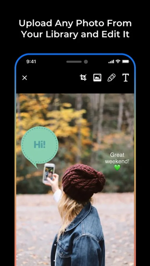 Or you can upload photos from your library and draw on them! You can add additional fun stickers, texts and emojis! Post them either to your story or to your feed!