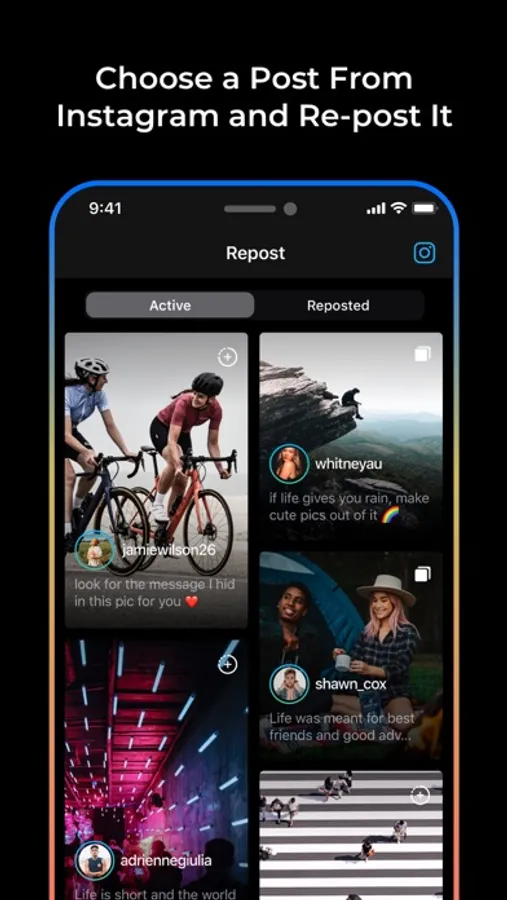 Re-post other Instagram users' posts and stories via copy-pasting their links.