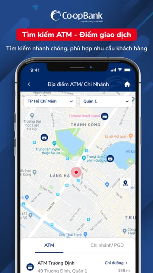 * Tìm kiếm địa điểm đặt máy ATM và địa điểm giao dịch của Co-opBank.