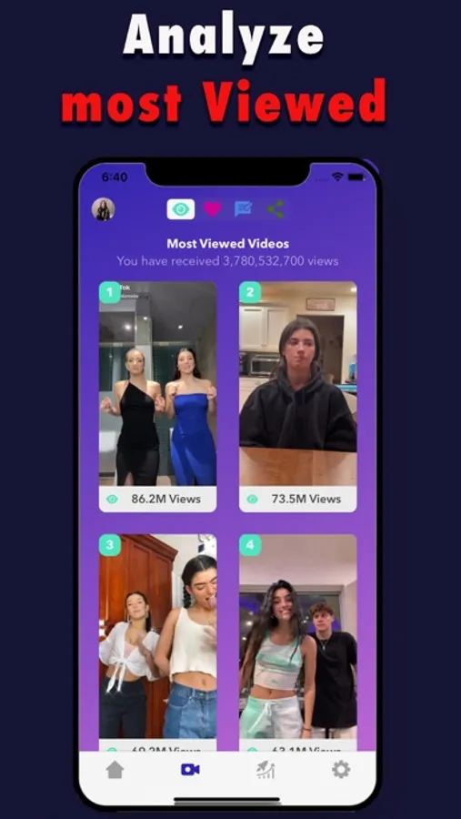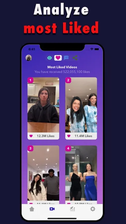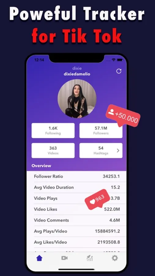 TikTracker analyzes useful insights about your TikTok follower base, follower growth, likes, admirers, blockers, video performance, and popularity. It helps you fully track your account status in real-time.