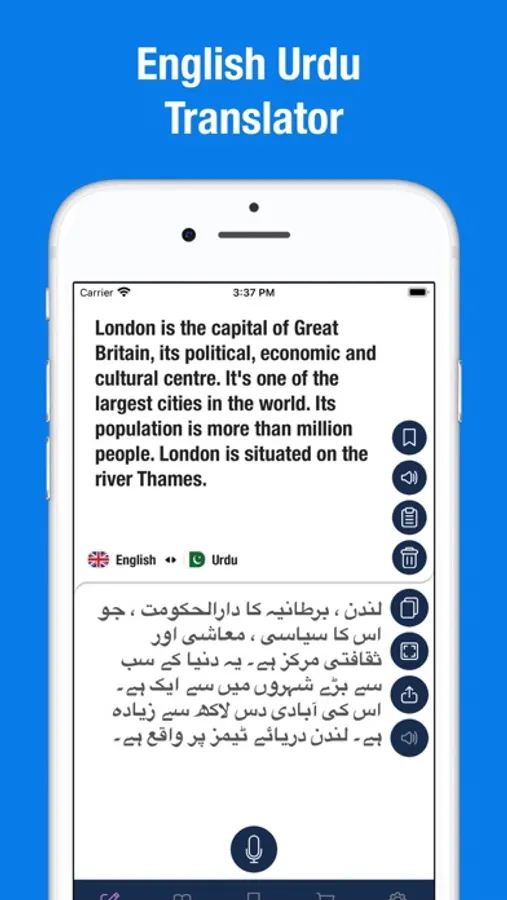 • Voice-to-Text – Speak and get the translation as text.