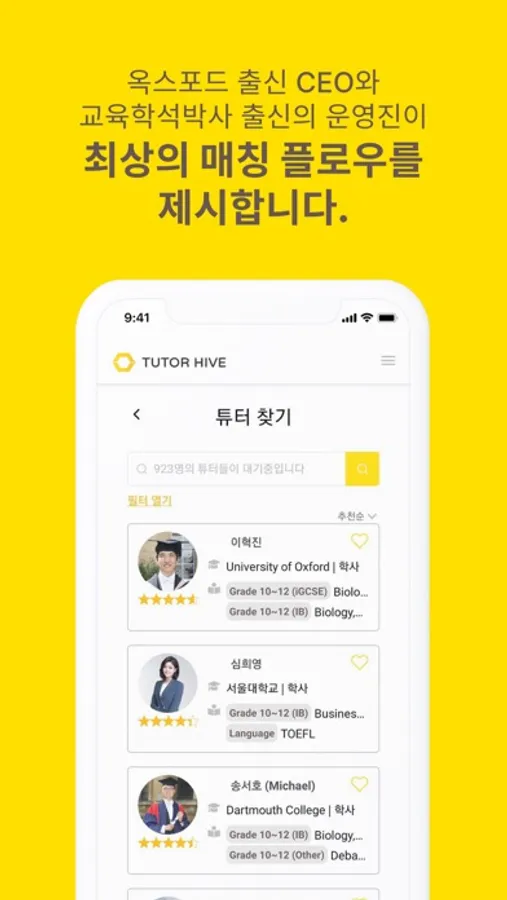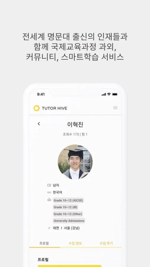 옥스퍼드, 하버드, 서울대 등의 국내외 명문대 출신자들이 멘토와 튜터가 되어주는 유학생 과외 플랫폼 튜터하이브입니다.