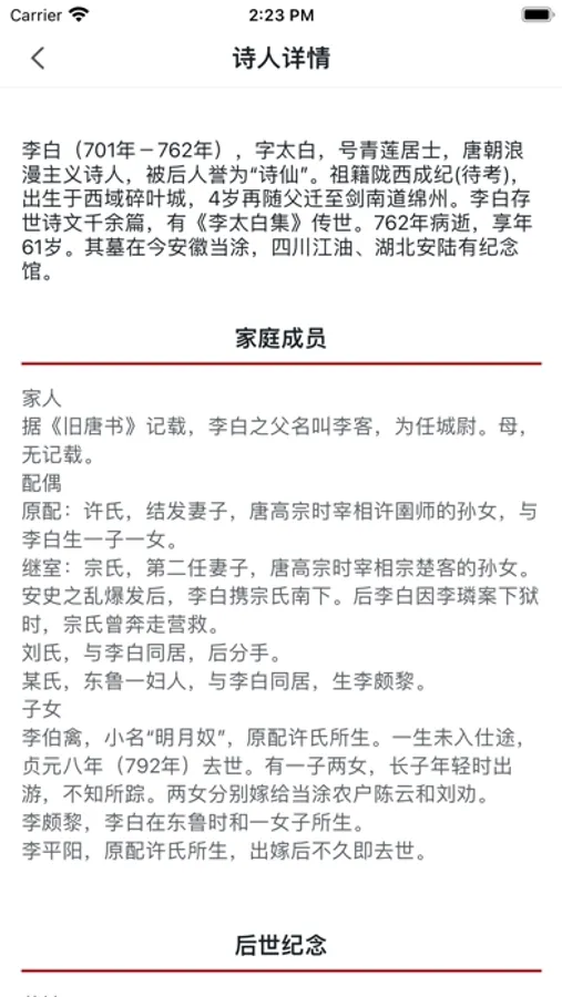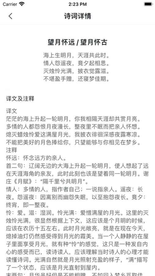 2、广场:广场是工具类模块,有古诗词、诗人、现代诗歌、古籍,还有更多功能开发中。