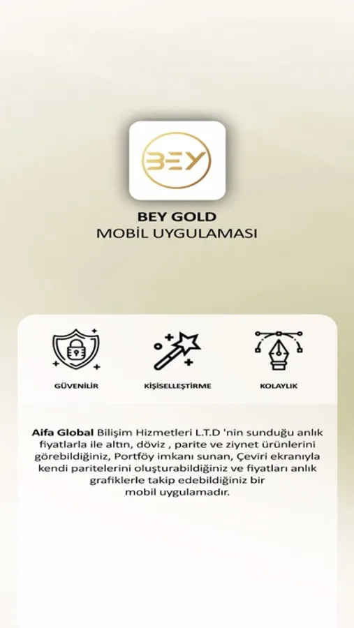 Aifa Global Bilişim Hizmetleri L.T.D 'nin sunduğu anlık fiyatlarla ile altın, döviz , parite ve ziynet ürünlerini görebildiğiniz , Portföy imkanı sunan, Çeviri ekranıyla kendi paritelerini oluşturabildiğiniz ve fiyatları anlık grafiklerle takip edebildiğiniz bir mobil uygulamadır.
