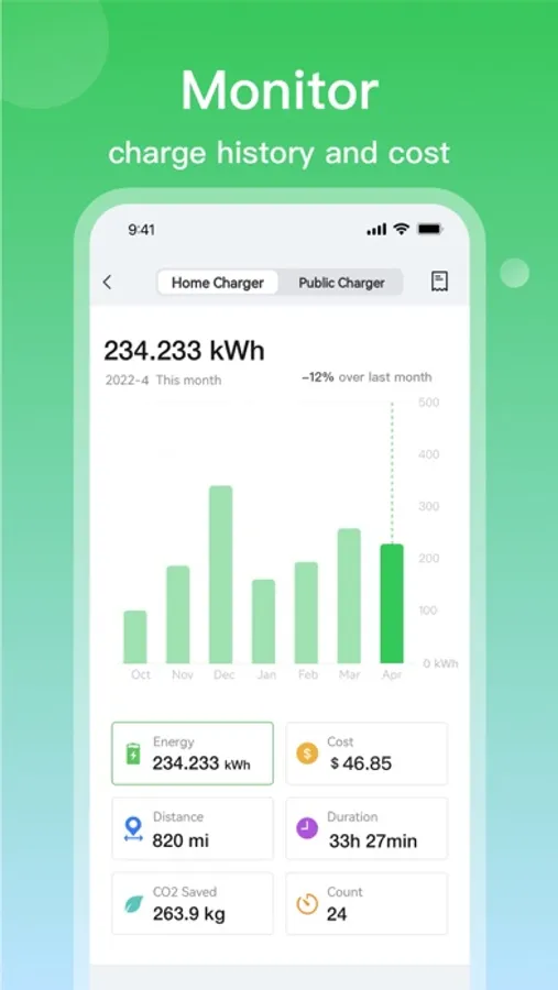 • View real-time charging statistics including: Power usage, energy costs, charging amperage, charge duration and much more!