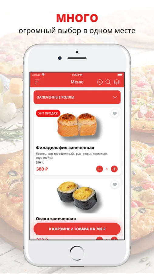 Всегда в нашем меню: пицца, роллы, горячие блюда, десерты и многое другое.