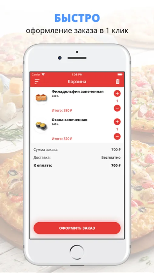 Скачивайте наше приложение, оформляйте заказ и наслаждайтесь любимой едой, где бы Вы ни были! Приятного аппетита!