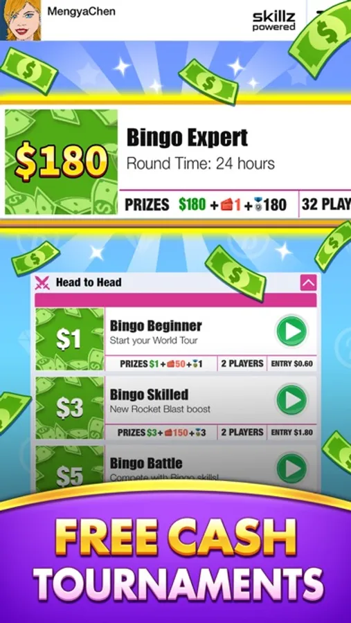 Hurry up! Time to win real prizes! Must-play skill-based real-time competitive FREE game! Bingo Win Cash offers Multi-players, Free-Entry Events, and Fair matches! 100% safe and secure withdrawal enables you to grasp real cash, 7x24 non-stop matches exercise your Bingo skill, play Bingo to win real-life prizes! Let’s bingo for CA$H!