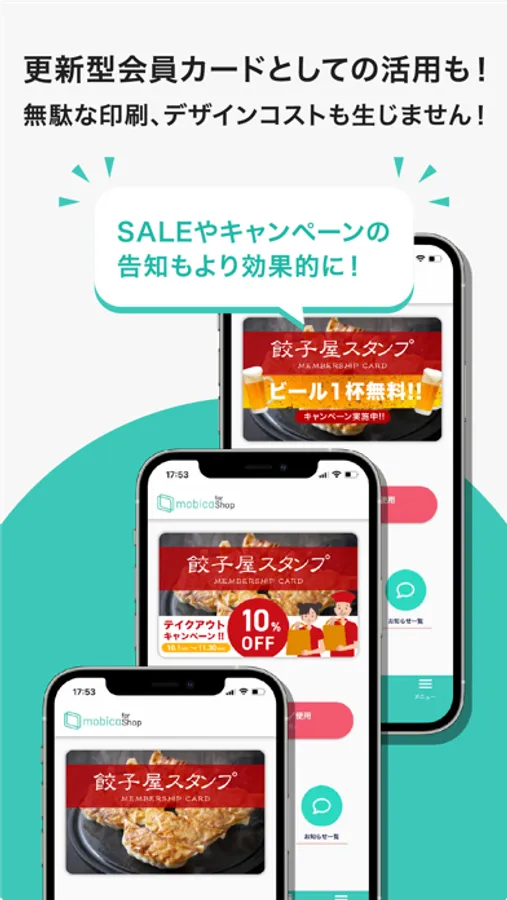 また、ポイント、スタンプカードの機能を使わないお店でも、会員カードとして利用してもらうことも十分有効です。