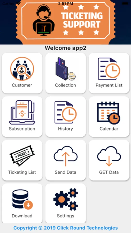 HXA Collection App for support Customer and collect money and can open a ticket and make a reply or close ticket, show calendar and history of payment and subscription can work on it with and without internet connection