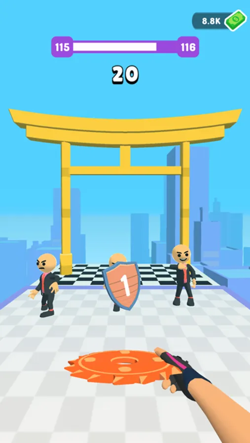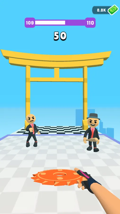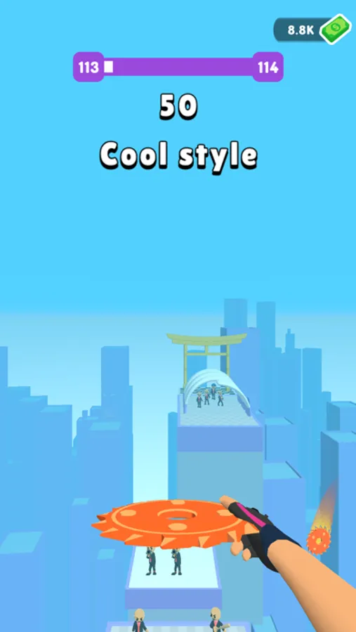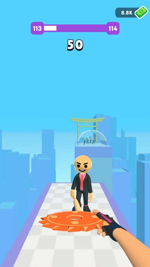 Throw the discs towards enemies to slice them. Do trick shots by bouncing the discs, make combos. Use multipliers, portals etc. Feel the action-packed game in a first-person view. Slice them up!