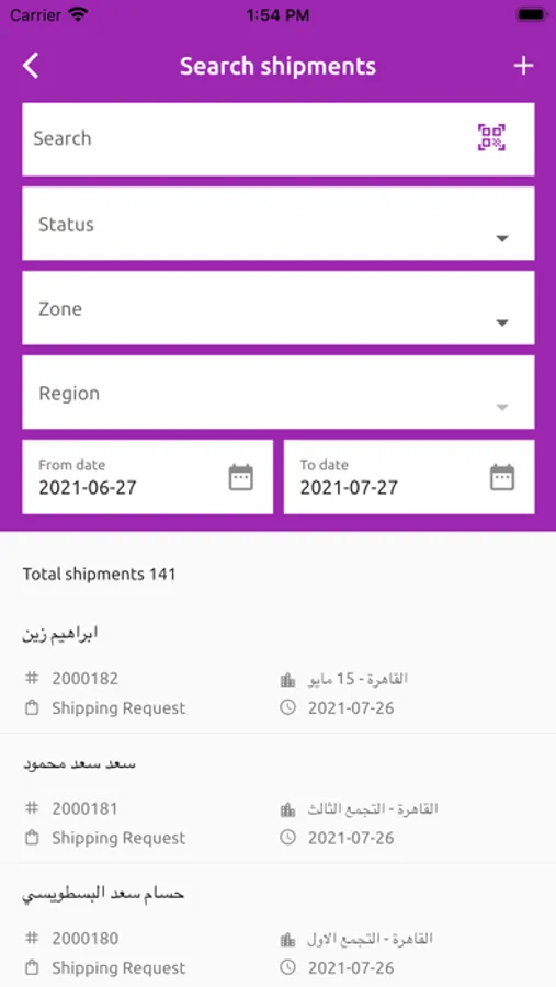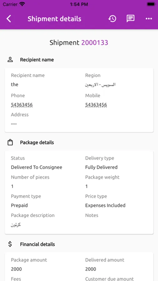 يسمح التطبيق لجميع العملاء في جميع أنحاء الجمهورية بإدارة تسليم واستلام الشحنات باستخدام الهاتف المحمول