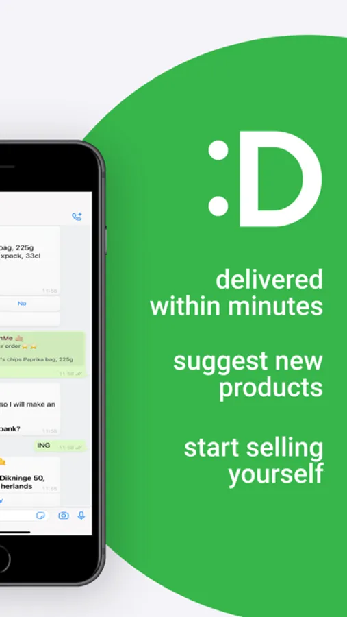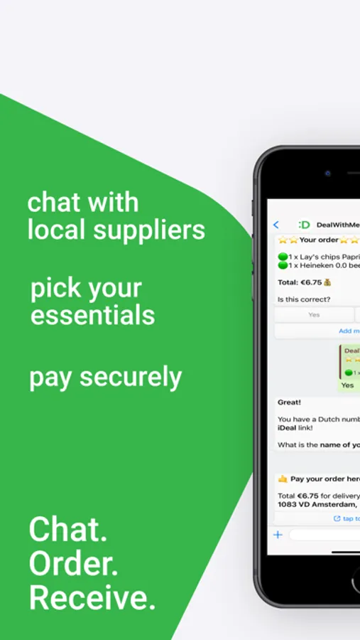 Via DealWithMe you can easily order everyday groceries via Whatsapp. We present you in an overview what is offered in your area. You then choose the products and pay securely.