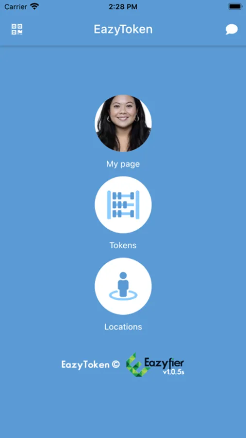 Then the customer presses the QR icon, and a QR code appears on the screen, which the employee can scan with his/her app.