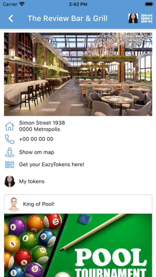 Customers can buy and use stamp cards, choose location, choose language and settings and much more.