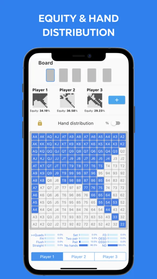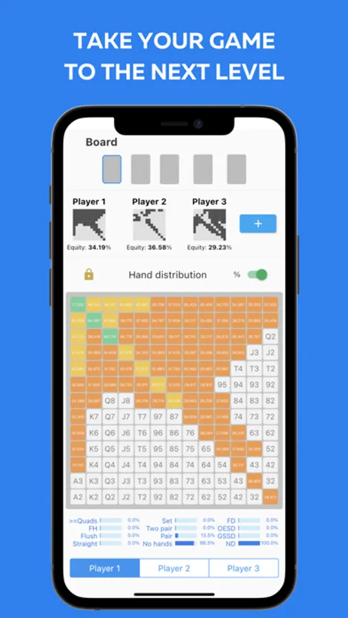 Utilize the Equity distribution and Hand distribution graphs to take your poker game to the next level.