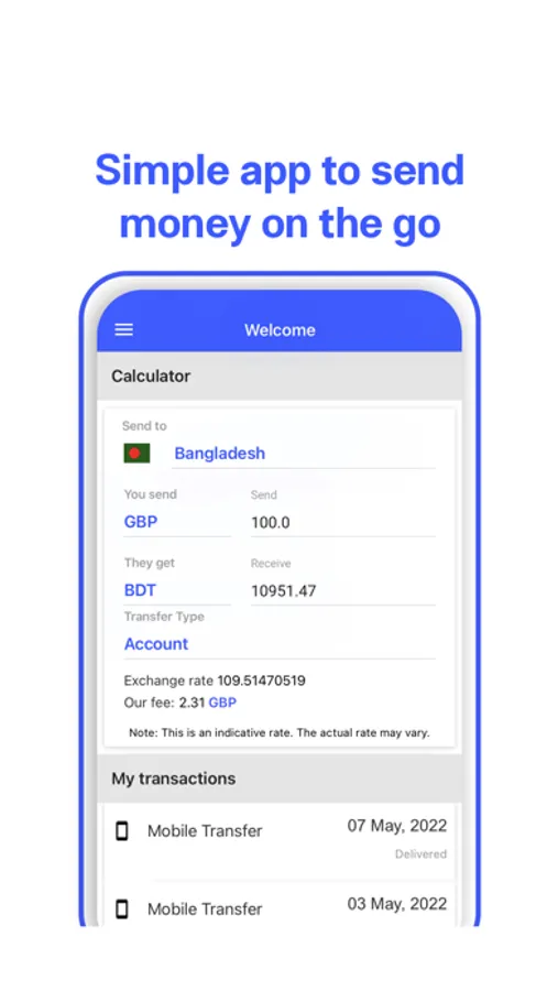 • Get started in minutes: Our easy-to-use app makes sending money a simple process.