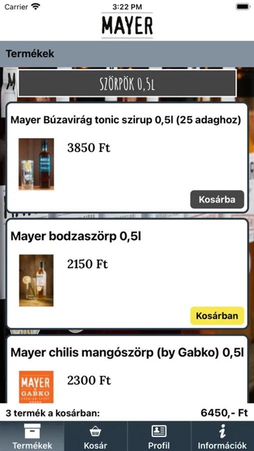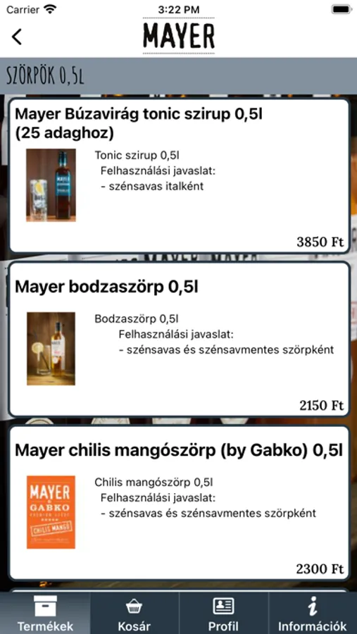 A szörpfőzés gondolata akkor fogalmazódott meg bennünk, amikor saját éttermünkbe kerestünk természetes alapanyagokból készült, tartósítószer mentes szörpöket. Mivel hosszas keresgélés után sem találtuk meg az igazit, arra jutottunk, hogy inkább megfőzzük magunknak. Először csak barátainknak és vendégeinknek kínáltuk saját főzésű italainkat, majd a sok pozitív visszajelzés után úgy döntöttünk, hogy családi vállalkozásban megalapítjuk saját szörp üzemünket, ahol természetes alapanyagok felhasználásával készítjük a prémium Mayer szörpöket és szirupokat. Kizárva a mesterséges aromákat és színezékeket. Valamennyi termékünket saját recept alapján főzzük, és célunk, hogy teljes mértékben megőrizzük a gyümölcsök és fűszerek eredeti ízét, illatát.