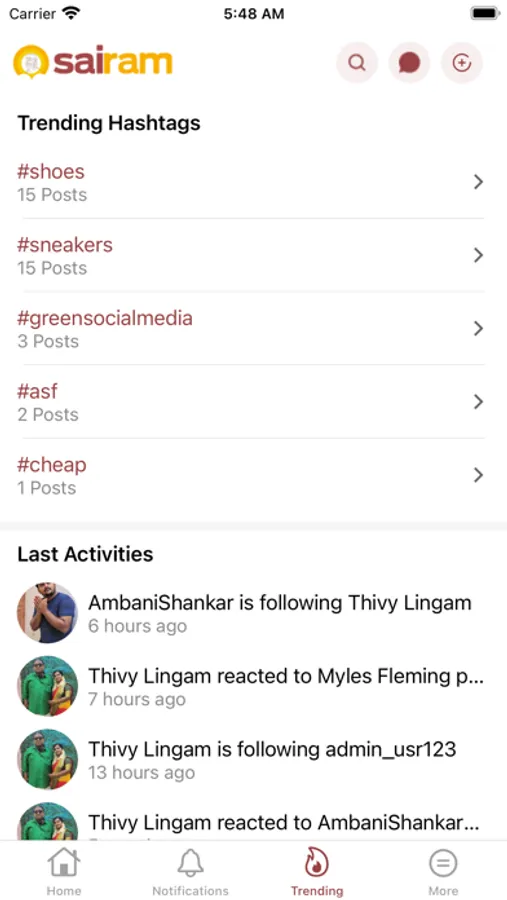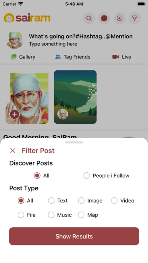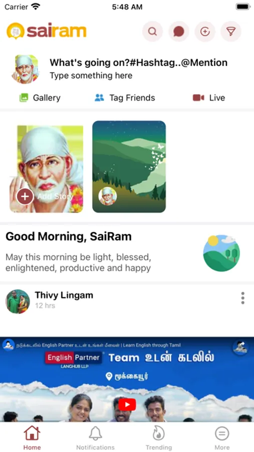 SaiRam.app is a Green Social Media Platform that keeps like-minded people connected. You can engage with people by share ideas, photos, videos, and audio.