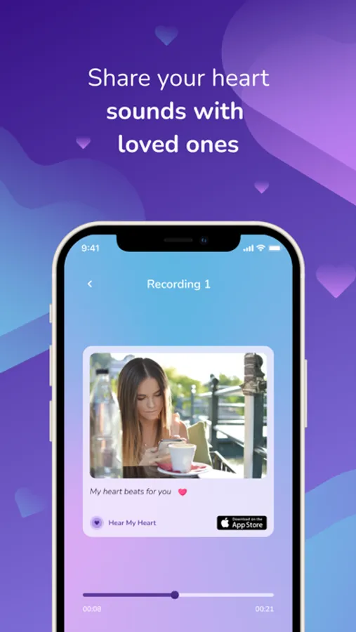 Hear my Heart is a new and fun way to share what your heart says. Simply place the bottom of your iPhone on the left chest/collarbone to listen, record and share your heart sounds with loved ones.