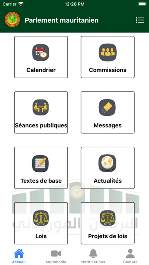 الهدف من هذا التطبيق هو تسهيل متابعة نشاط البرلمان الموريتاني و ذلك من خلال توفير وسيلة رقمية متطورة و عصرية تسمح بالاطلاع على مجريات وتفاصيل العمل داخل البرلمان و ذلك عبر عدة خدمات متوفرة في هذا التطبيق : جدول الأعمال، المستجدات، الجلسات، القوانين، مشاريع القوانين، النصوص.
