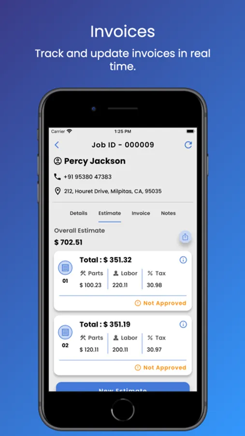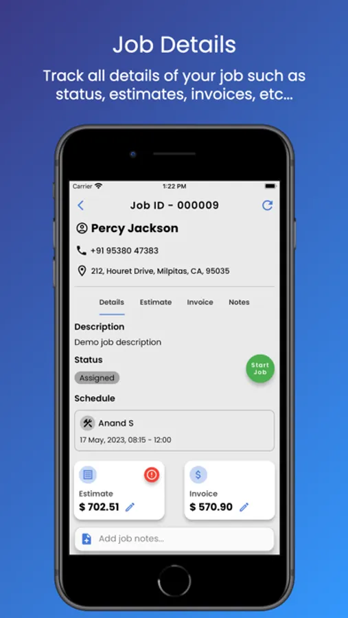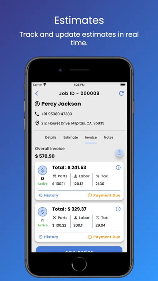 Plumbing Owl supports plumbing job assignments and tracking to fulfil all the customer service requests in the most effective manner. Our tool helps plumbing companies to increase their productivity on the overall plumbing jobs. It helps plumbers track their jobs, create estimates, invoices etc..