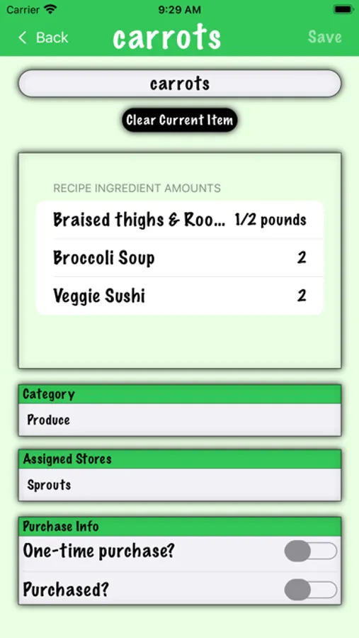- mark items as 'One-Time Purchase' to automatically delete them from your list once purchased.