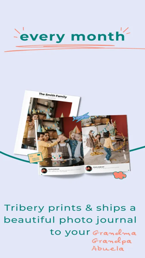 Created as an extension of the family group chat, Tribery allows you to create your family timeline, invite your family members to contribute, seamlessly upload your monthly highlights and print family journals that are shipped to your loved ones.