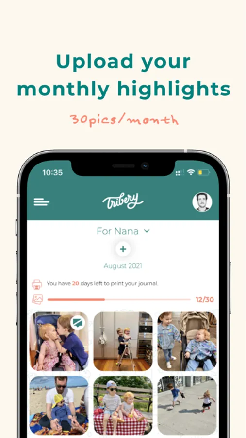 The Tribery app allows you to add anyone to your subscription. Each of those people—think: close friends, family, the nanny—can then upload their own highlights, to be included in that month’s printed photo journal. Every month, Tribery will create a beautiful, bound journal—and send it directly to your loved ones. All you have to do is submit the photos, sit back, and watch the happiness unfold.